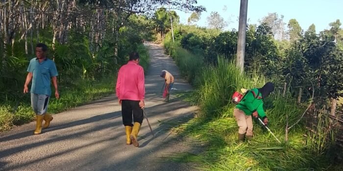 EMPAT LAWANG, LINTANGPOS.com – Warga Kecamatan Talang Padang menggelar kegiatan gotong royong membersihkan rumput serta melakukan tebas bayang di sepanjang jalan provinsi
