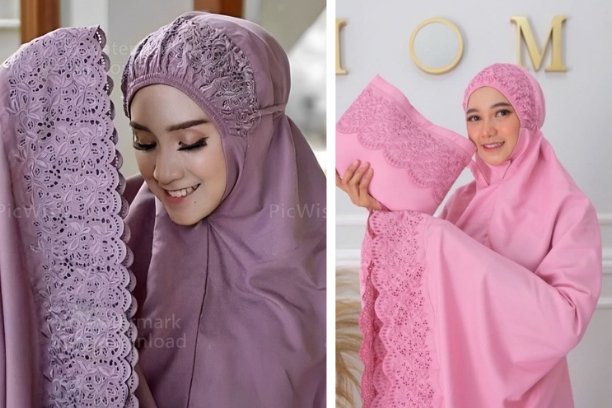 6. Mukena Motif Pastel Modern menyasar segmen remaja muslimah.