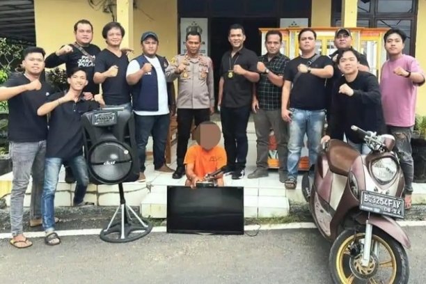 Polisi juga mengamankan barang bukti berupa satu unit motor Yamaha Vino, televisi 32 inci, speaker, lemari kaca, dan receiver K-Vision.