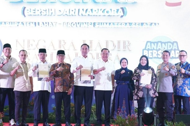 Kegiatan tersebut dihadiri sejumlah tokoh nasional dan daerah, di antaranya Kepala BNN RI Komjen Pol Suyudi Arya Seto, Menteri Desa dan Daerah Tertinggal Yandri Susanto, Kakor Binmas Irjen Pol Kalingga, Wakil Gubernur Sumatera Selatan Cik Ujang, Waka Polda Sumsel Brigjen Pol Sony Santana, serta Kepala BNN Provinsi Sumsel Brigjen Pol Hisar Siallagan.
