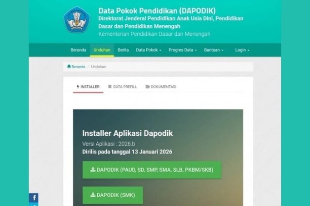 Kemendikdasmen merilis Dapodik 2026.b berbentuk installer penuh. Sekolah wajib uninstall versi lama agar pemutakhiran data dan sinkronisasi berjalan optimal. (*/Ils)
