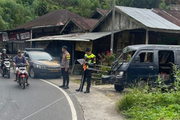 Mikrolet yang membawa pelajar dilaporkan nyaris masuk ke jurang setelah mengalami banting setir, sementara truk CPO justru berhenti melintang di tikungan patah yang dikenal rawan kecelakaan.