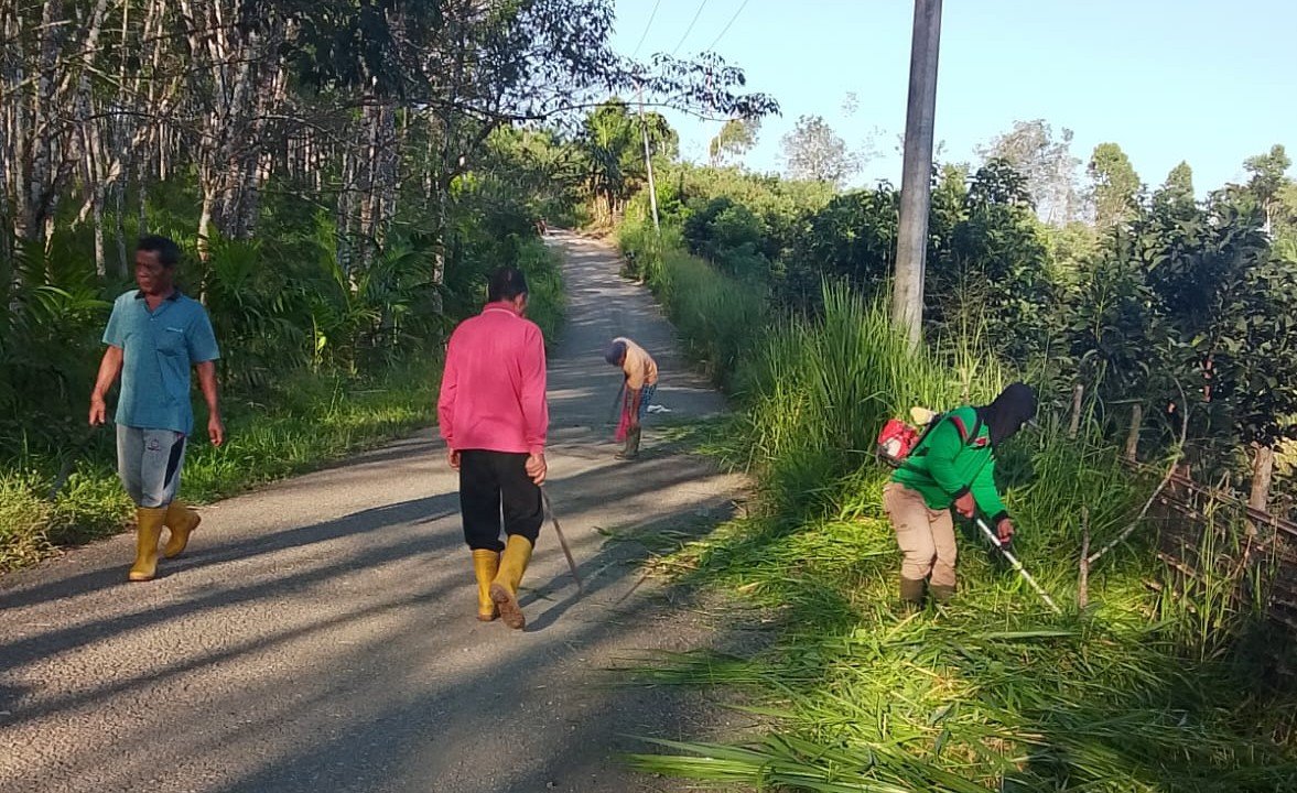 Warga desa setempat berbondong-bondong turun ke jalan, bukan untuk berunjuk rasa atau acara seremonial, melainkan untuk melakukan aksi nyata sosial, gotong royong membersihkan rumput tebas bayang yang tumbuh liar di sepanjang jalan utama desa.