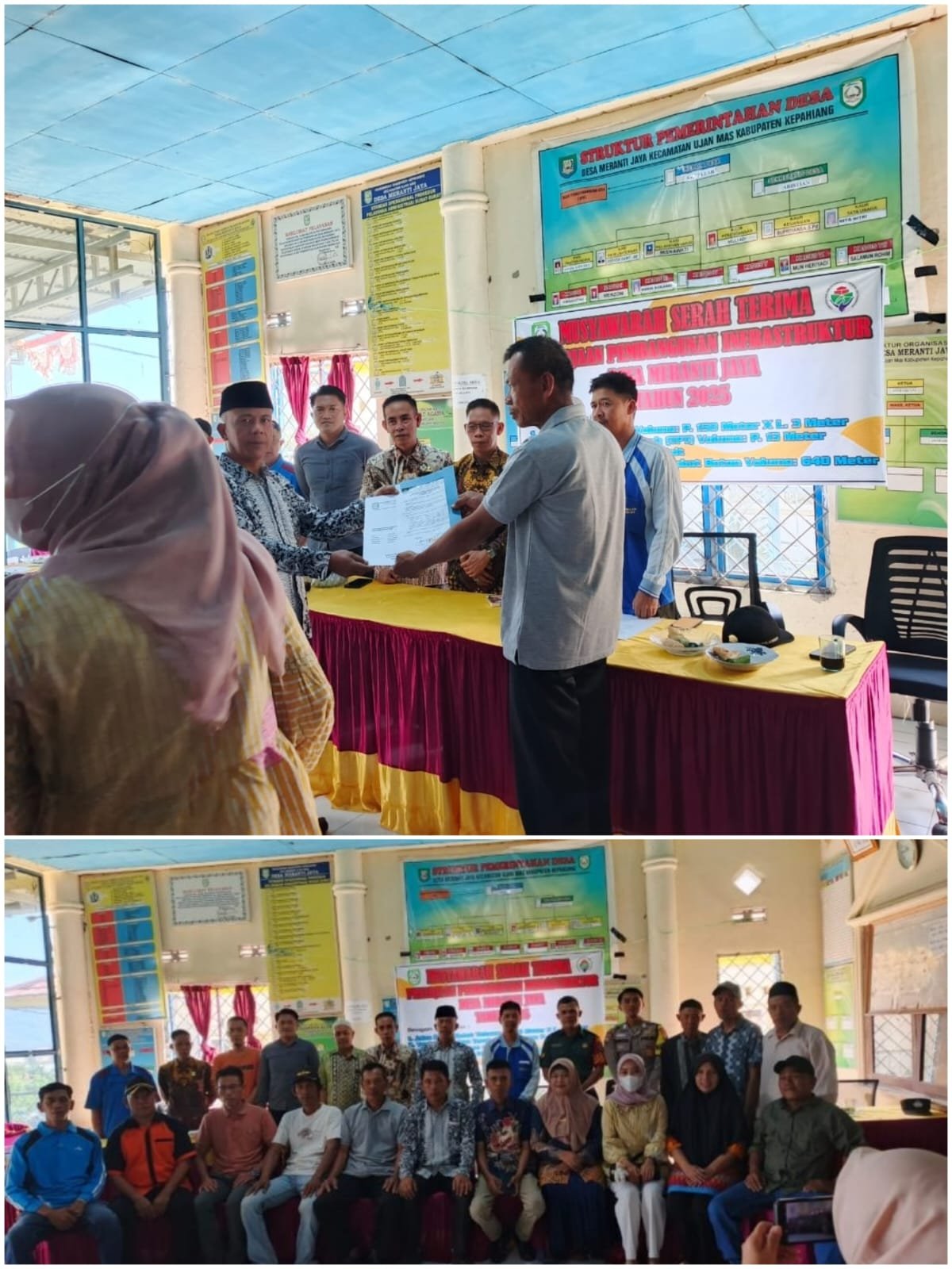 Pemerintah Desa Meranti Jaya, Kecamatan Ujan Mas, secara resmi menyerahkan hasil pembangunan fisik yang bersumber dari Dana Desa (DD) Tahun Anggaran 2025 kepada masyarakat, pada 26 Juli 2025.