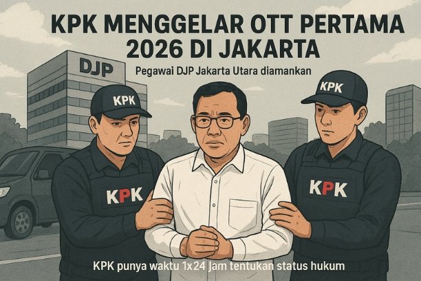 KPK menggelar OTT pertama 2026 di Jakarta. Pegawai DJP Jakarta Utara diamankan. KPK punya waktu 1x24 jam tentukan status hukum. (*/Ils)
