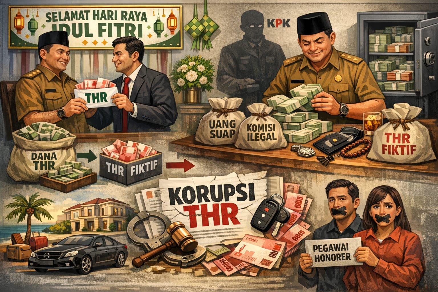 Namun, seperti tahun-tahun sebelumnya, ada ironi yang tak kunjung sirna, Lebaran bukan hanya momentum spiritual, melainkan juga musim “panen” bagi para pejabat korup dan oknum yang menjadikan Tunjangan Hari Raya (THR) sebagai ladang perburuan.