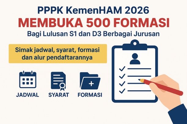 Dengan 500 formasi, lintas jurusan, dan peluang karier yang stabil, PPPK KemenHAM 2026 menjadi salah satu rekrutmen ASN paling menarik tahun ini.