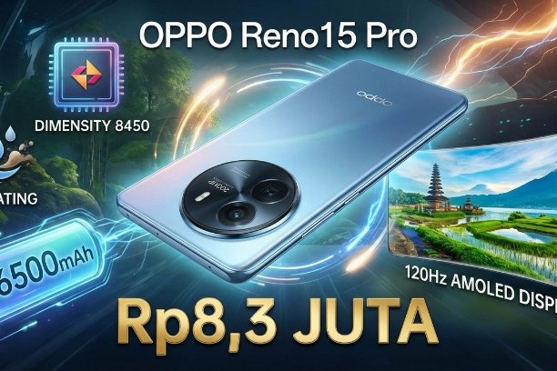 Oppo Reno15 Pro resmi rilis November 2025. Kamera 200MP, Dimensity 8450, layar AMOLED 120Hz, baterai 6500mAh, IP68. Harga Rp8,3 juta. (*/Ils)