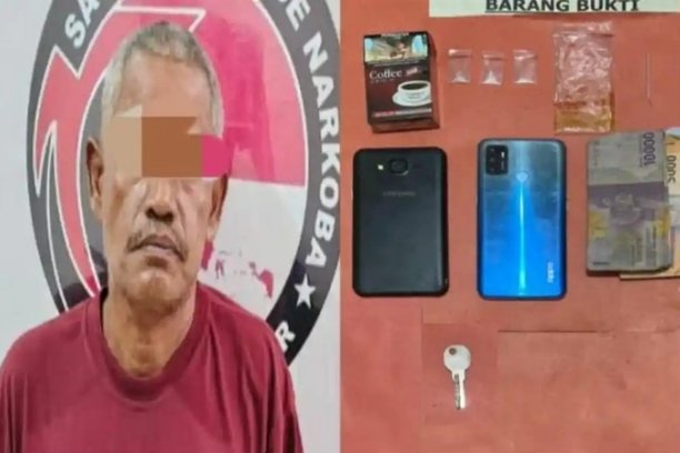 ° Polisi mengamankan Ajan (51) dengan sabu 2,07 gram, uang tunai, dan ponsel.
