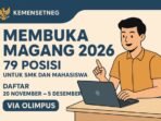 Ringkasan Berita: ° Kemensetneg membuka 79 posisi magang untuk siswa SMK dan mahasiswa aktif pada periode Januari–Maret 2026. ° Pendaftaran dibuka 20