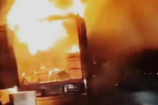 Seluruh muatan truk dilaporkan hangus terbakar.