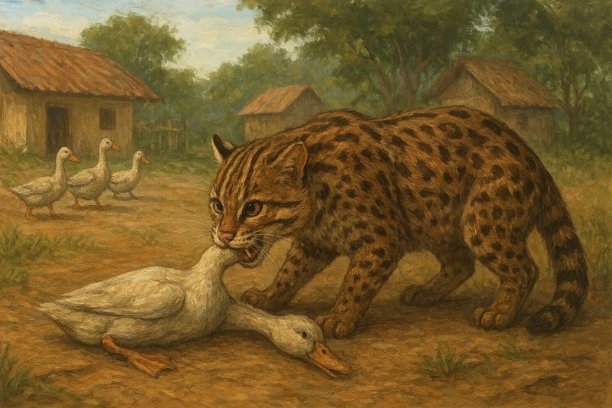 ° Warga Sukamulya, Palembang, digegerkan oleh kemunculan macan dahan yang memangsa sembilan ekor bebek milik warga.° Kejadian terjadi Jumat dini hari dan sempat terekam video viral.